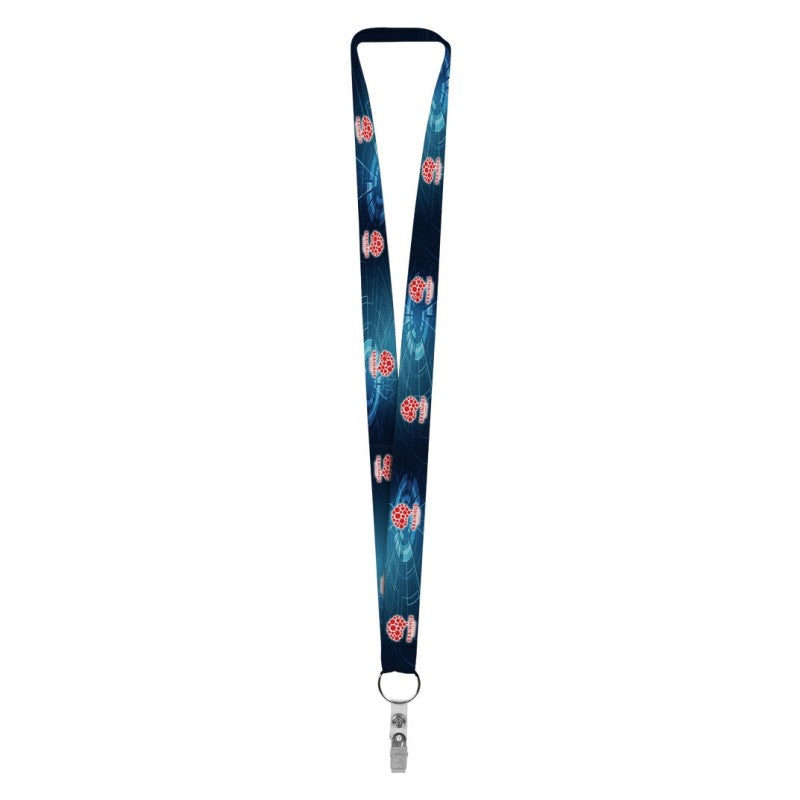 Must be the same logo on each side and the second side logo will have a random starting point. Best for multi-color, full color and gradient logos. Artwork is printed on special paper and transferred with heat and pressure onto the lanyards.