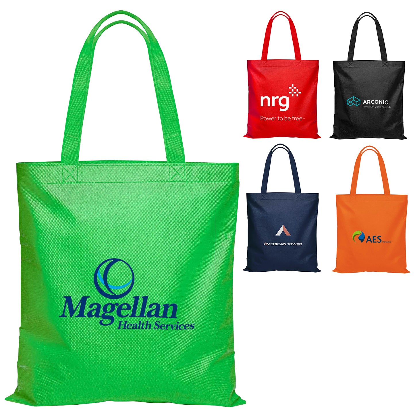 Non-woven 80GSM material. Durable stitched handles. Eco-friendly. Polypropylene, made of 100% recycled materials.