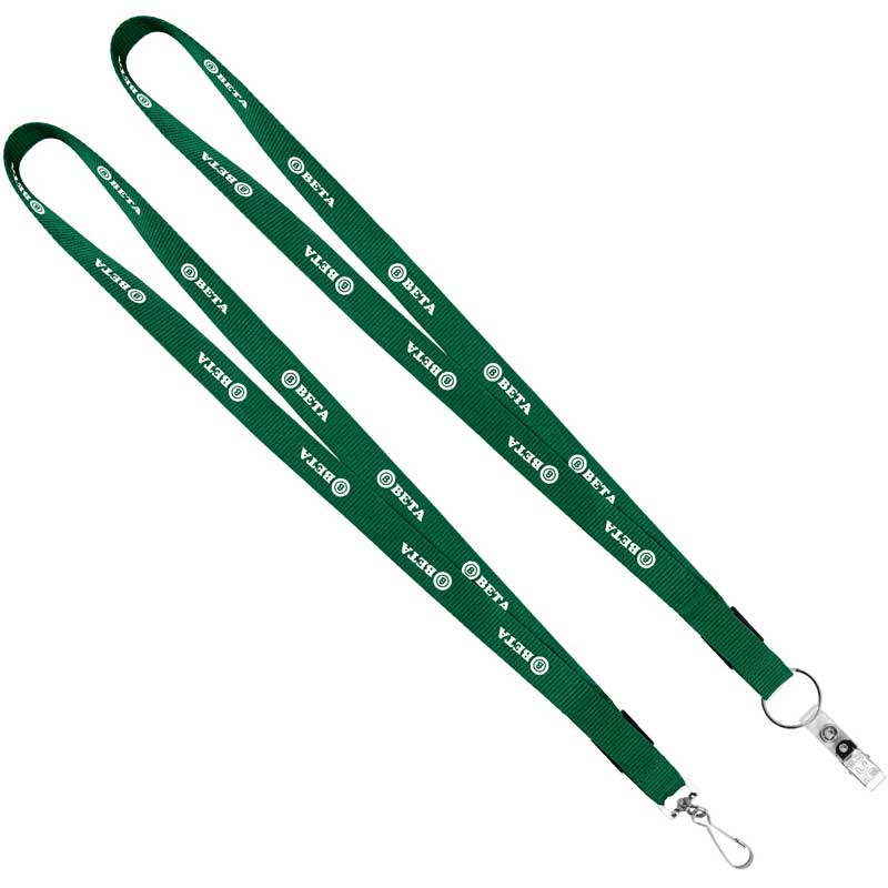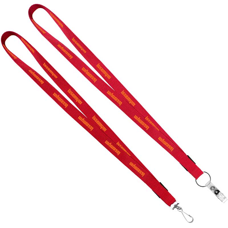A polyester lanyard with either a metal J-Hook or Bulldog attachment. Features Ionshield„� properties. The 3/4 wide polyester lanyard comes with either a metal J-Hook or Bulldog attachment and a split ring. Price includes a 1-color; 1-side; step and repeat imprint. Features SILVADUR„� Patented Polymer Technology: Silver ion polymer targets enzymes; preventing production of malodors on the treated article. SILVADUR„� Provides Unsurpassed Odor Protection. Sensory panel data proves that SILVADUR-treated textiles maintain odor protection through 50 washes. SILVADUR delivers a better; longer-lasting clean. Note: SILVADUR„� does not provide the user any protection from germs that may cause illness. For best fit and comfort; wash before use. Wash on delicate cycle in cold water. Do not use bleach. Air dry or tumble dry low heat. Notice For All PPE Products: All sales are final; no returns can be accepted.