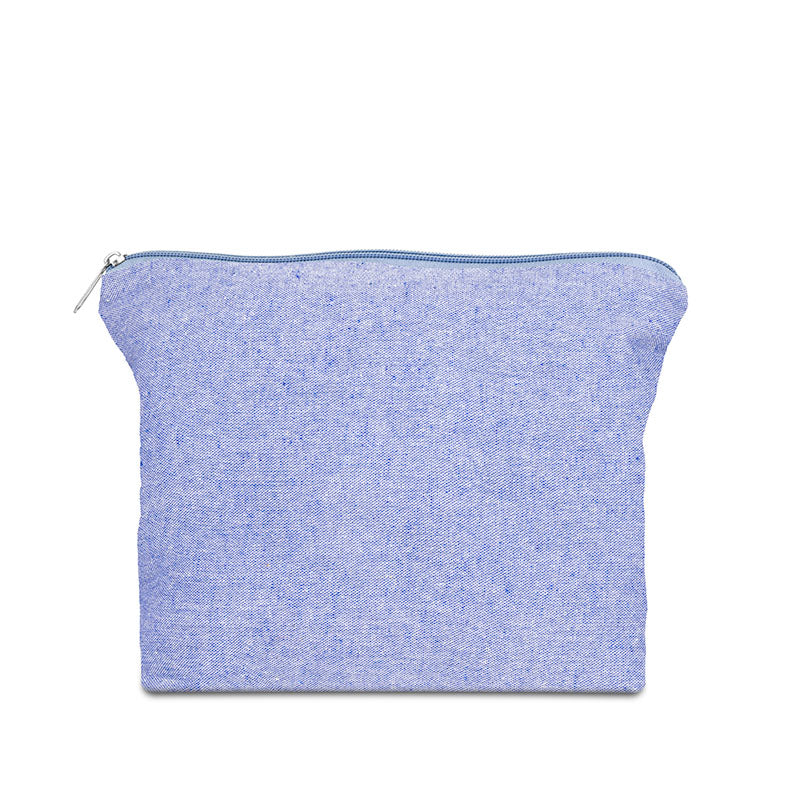 The 4oz. Recycled Cotton Pouch with Zipper Closure features 70% recycled fabric and 30% cotton, making it a sustainable and stylish storage solution. Made from 120 GSM cotton, this pouch is lightweight yet durable. The nylon zipper with a zinc puller ensures a secure closure, keeping your items safe and organized. Perfect for travel, work, or daily use, this versatile and reusable pouch helps you stay organized while supporting environmental sustainability.