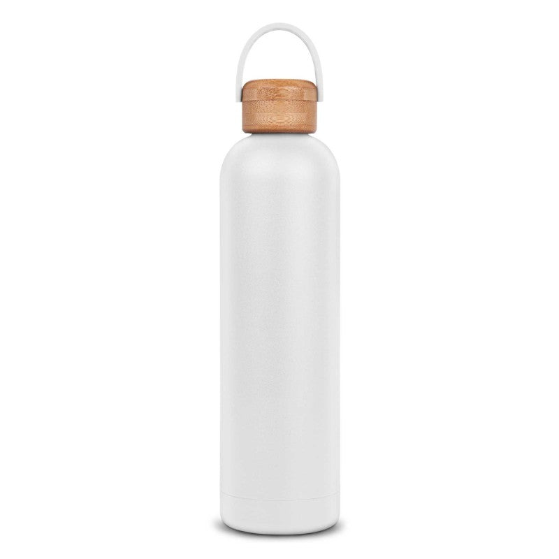 A beautifully-simple vacuum-insulated stainless steel water bottle, featuring a twist-on bamboo lid with silicone strap and durable powder coating. Keeps drinks hot for up to 12 hours and cold for up to 24 hours. Hand wash only, do not microwave.