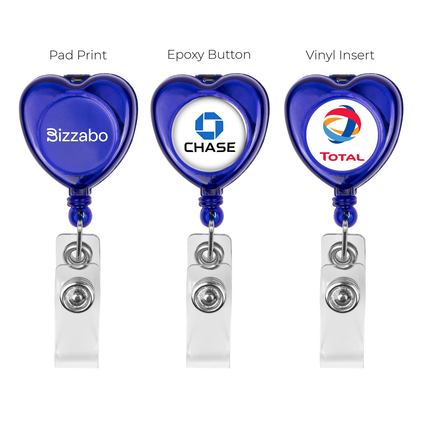 The 30” retractable, heart-shaped badge holder features a metal swivel alligator clip for secure attachment to clothing. Imprint directly on the badge holder or have a full color digital insert.