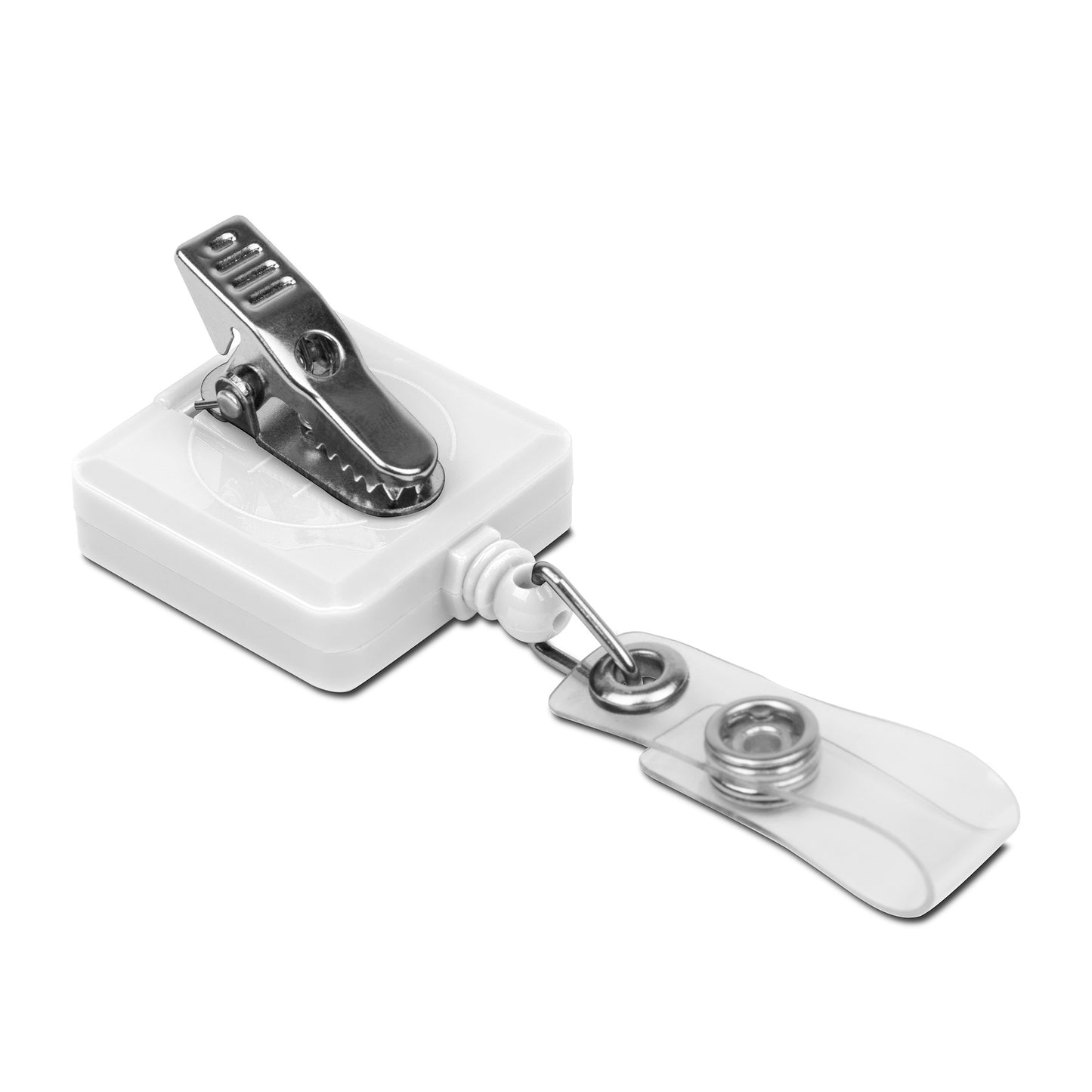 A 30" retractable trade show/office, badge reel with a metal swivel alligator clip. Imprint directly on the badge holder or have a full-color digital insert.