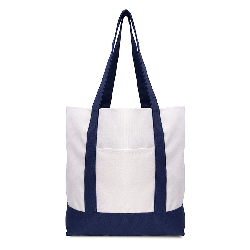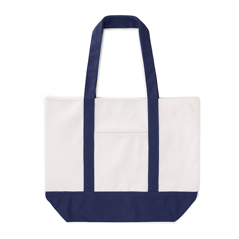 This large tote bag, made from durable 14oz poly cotton and a weight of 11.5 oz., is perfect for carrying groceries, work essentials, or everyday items. Measuring 15.5" in height and 19.5" in width, its spacious design and sturdy 13-inch folded handles, also crafted from 14oz poly cotton, ensure comfort and reliability for all your daily needs.