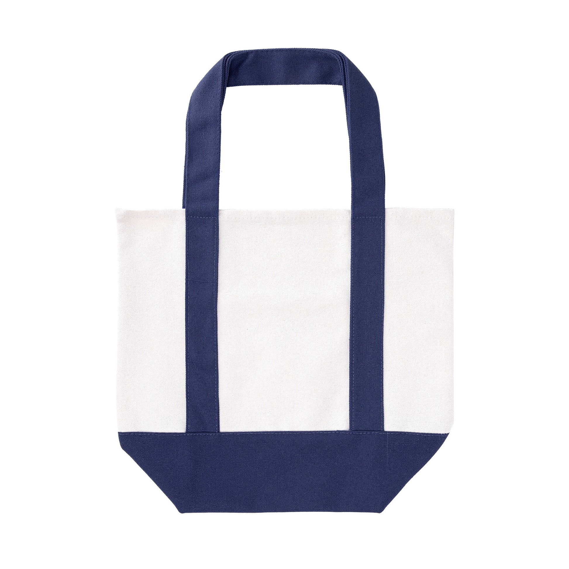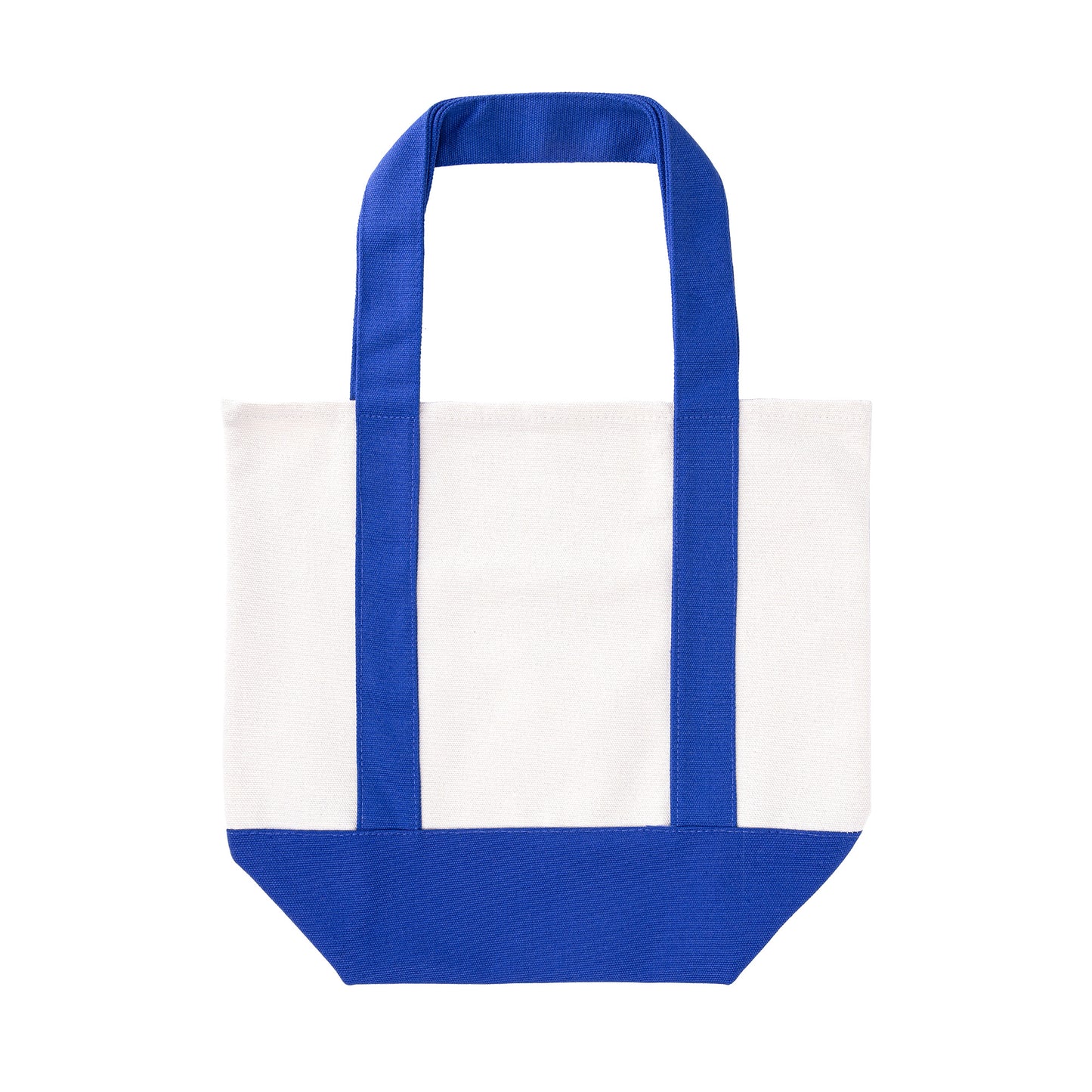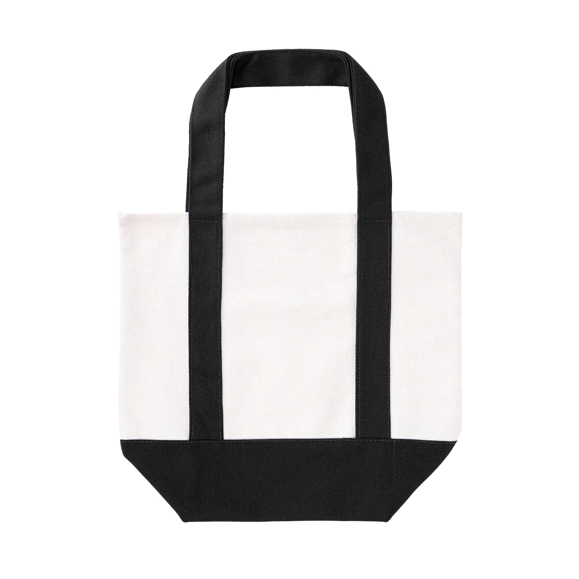 This mini tote bag, crafted from durable 14oz poly cotton and a weight of 11.5 oz., is perfect for carrying groceries, everyday essentials, or even as a stylish purse! Measuring 11.5" in height and 13" in width, it features sturdy 9-inch folded handles for comfort and versatility in daily use.