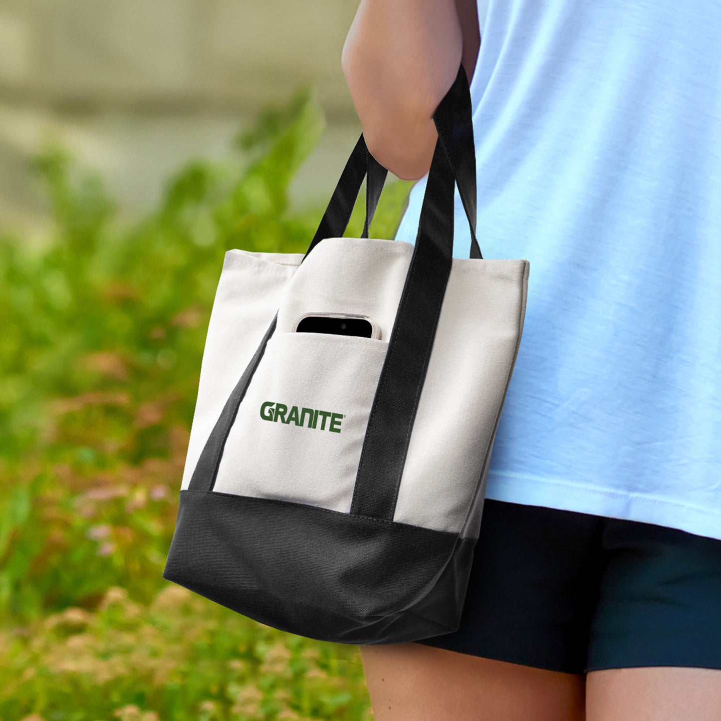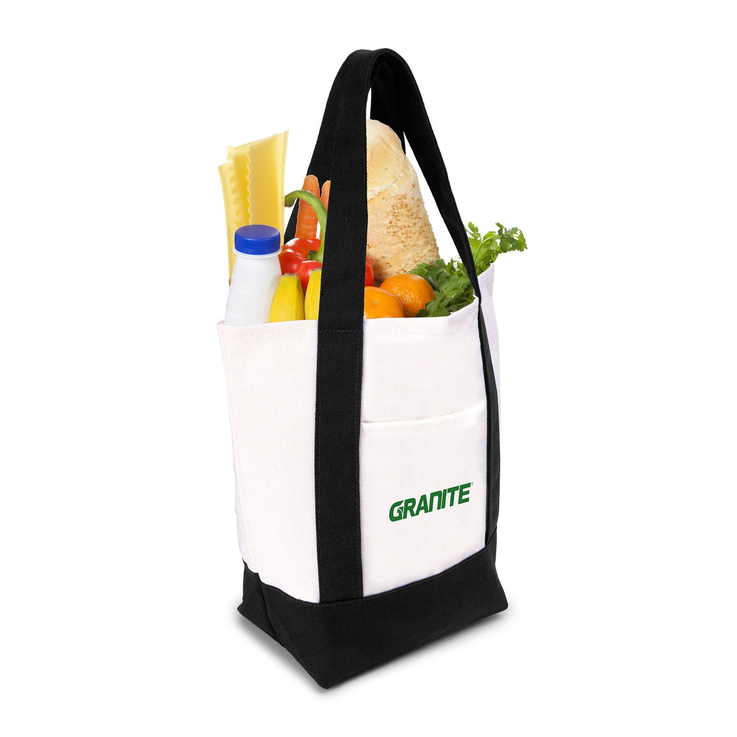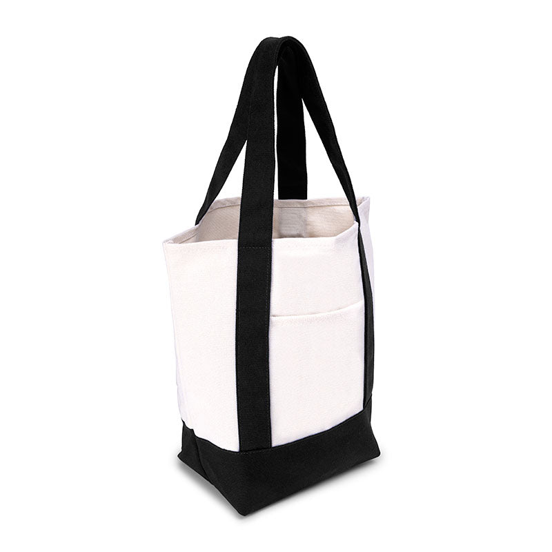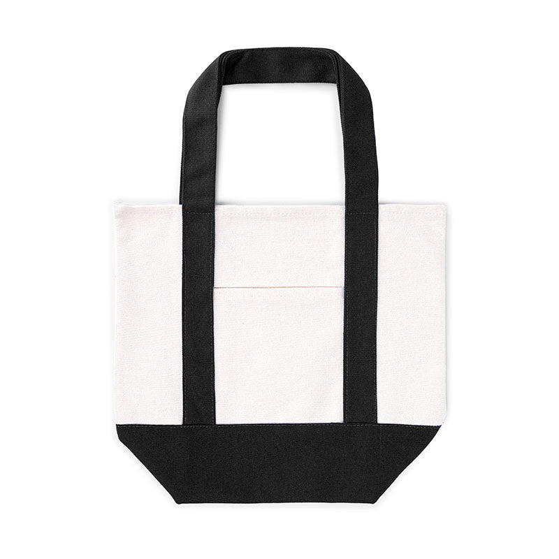This mini tote bag, crafted from durable 14oz poly cotton and a weight of 11.5 oz., is perfect for carrying groceries, everyday essentials, or even as a stylish purse! Measuring 11.5" in height and 13" in width, it features sturdy 9-inch folded handles for comfort and versatility in daily use.