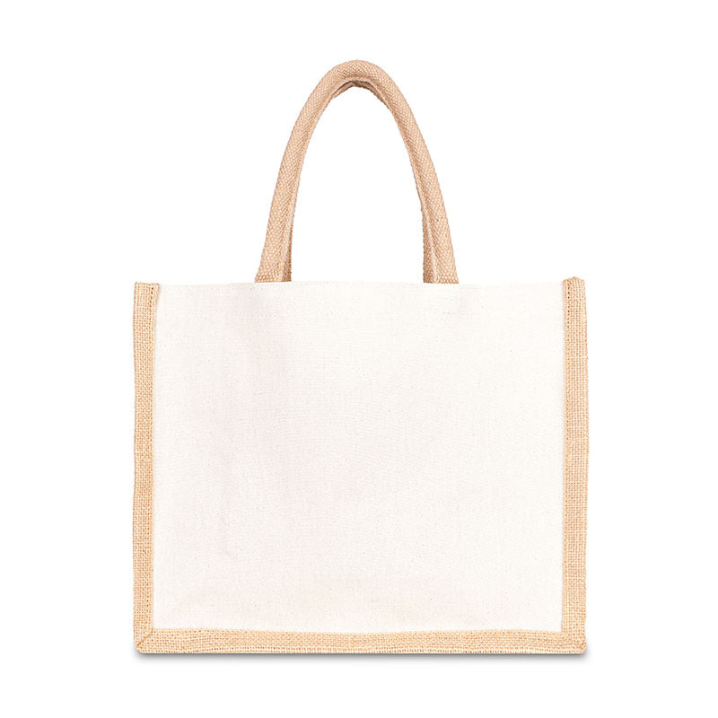 The Jute Cotton Tote with Jute Webbing Handle is a stylish and eco-friendly accessory perfect for everyday use. Crafted from a blend of durable jute and soft cotton, this tote combines strength with comfort. The sturdy jute webbing handle ensures easy carrying, making it ideal for shopping, beach outings, or daily errands. Its natural, earthy aesthetic complements any casual outfit, while its spacious interior provides ample room for all your essentials. Embrace sustainability without compromising on style with this versatile and practical tote.