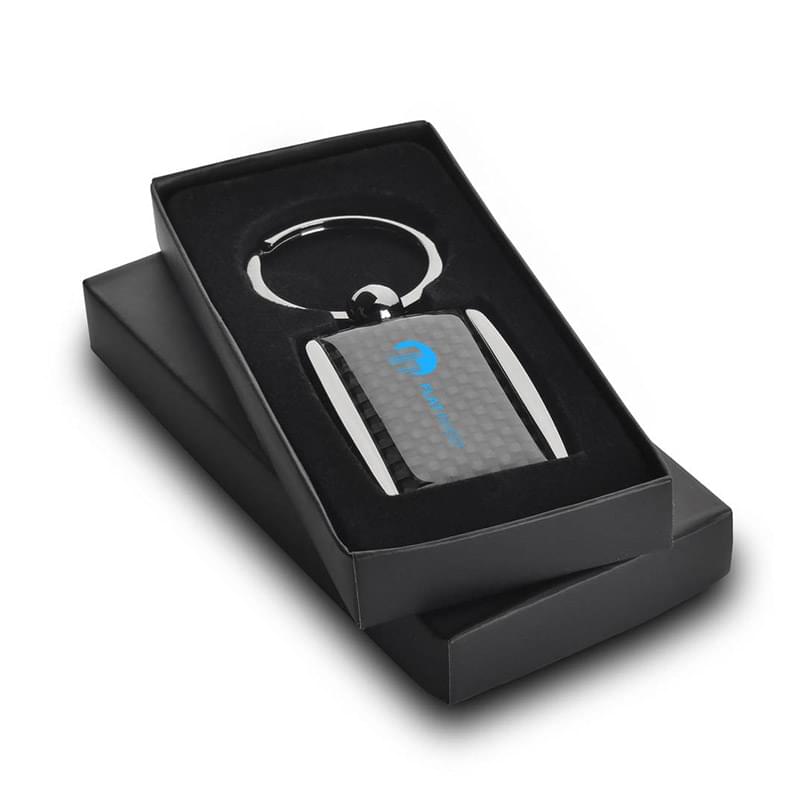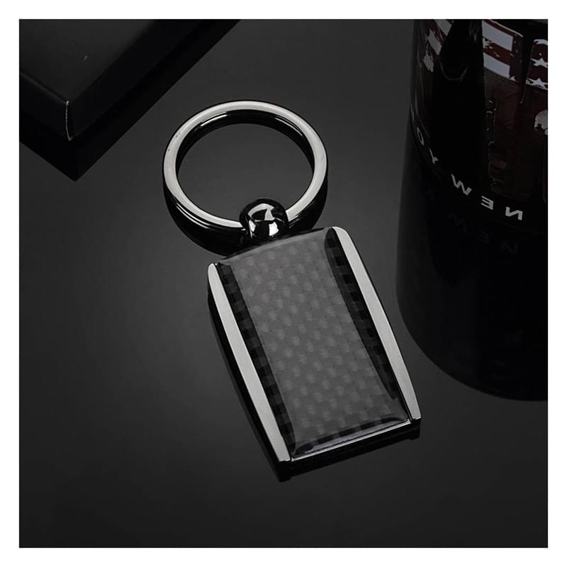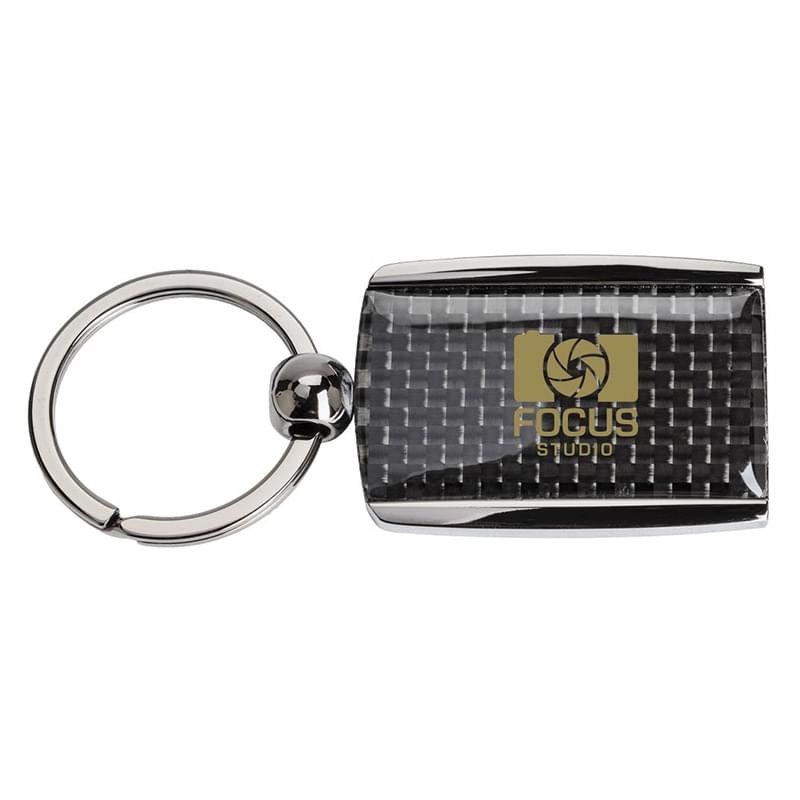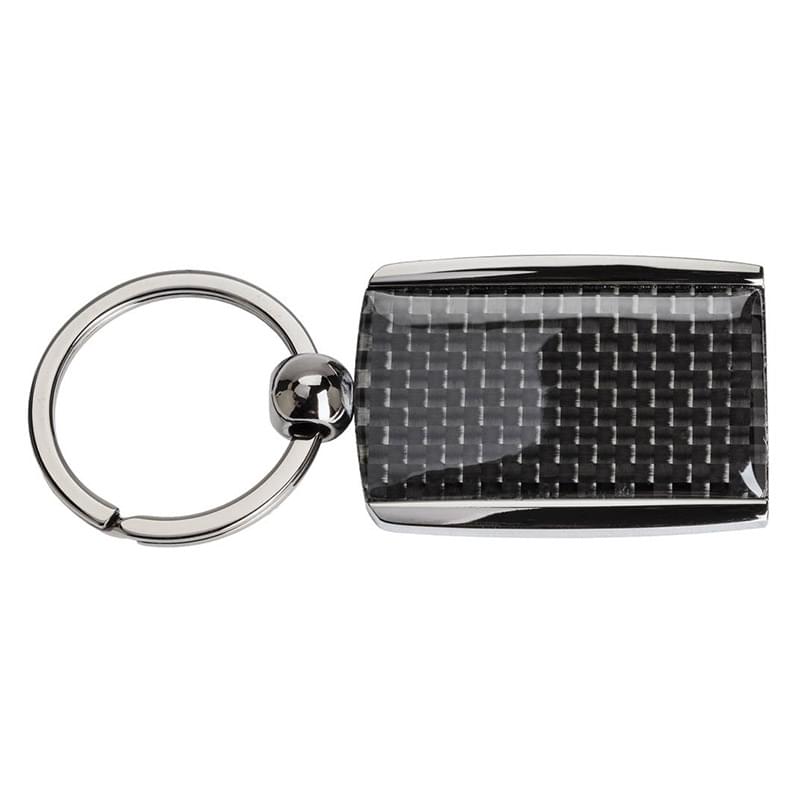 Make yours a deluxe brand when you choose our carbon fiber design key chain! Features gun metal color accents. Includes a gift box. Logo is laser engraved on the metal surface.